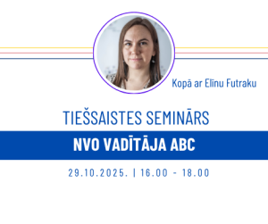 Šī gada 29. oktobrī plkst. 16.00 līdz 18.00 notiks tiešsaistes seminārs “NVO vadītāja ABC”. Seminārs būs veltīts dažādiem ar NVO (biedrību un nodibinājumu) darbību saistītiem juridiskiem un praktiskiem aspektiem:  kādi normatīvie akti, likumi, MK noteikumi un citi dokumenti regulē NVO darbību;  noskaidrosim NVO tiesības un pienākumus;  ielūkosimies kāpēc, kad un kā veikt izmaiņas NVO darbībā;…